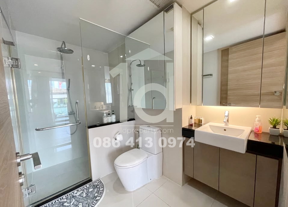 2-bed condo at O2 Hip in Soi Nai Lert near BTS Phloen Chit. Walk around 4-minutes(300m.) to BTS Phloen Chit. The fully furnished unit comes with a balcony and parking space. The building features a shared pool, 24/7 security, and a gym.